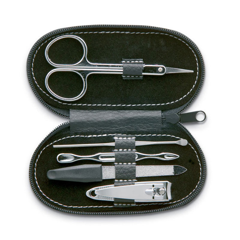 Manicure set in oval PU pouch.